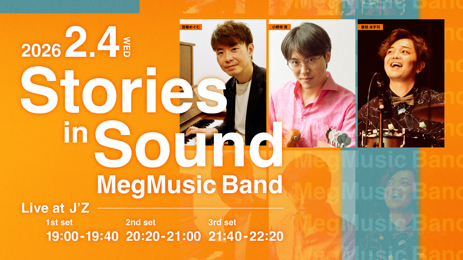 ベース小野寺覚、ドラム曽根未宇司による確かなアンサンブルが楽曲に奥行きを与え、三者の呼吸が一体となった瞬間、音楽はより豊かな表情を見せる。静と動、優しさと高揚が交差するMegMusic Bandの世界を、J’Zの上質な空間でじっくりと体感してほしい。