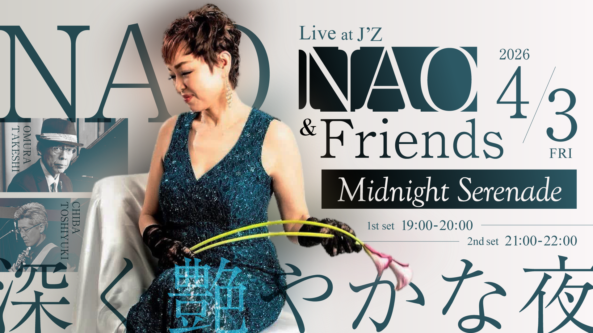 深く艶やかな“Deep Voice”と揺るぎないJazz Spiritで、長年シーンを牽引してきたNAO。劇団出身というバックボーンに裏打ちされた表現力と、人生の機微をすくい上げる歌声は、スタンダードからオリジナルまで楽曲に新たな息吹を吹き込む。